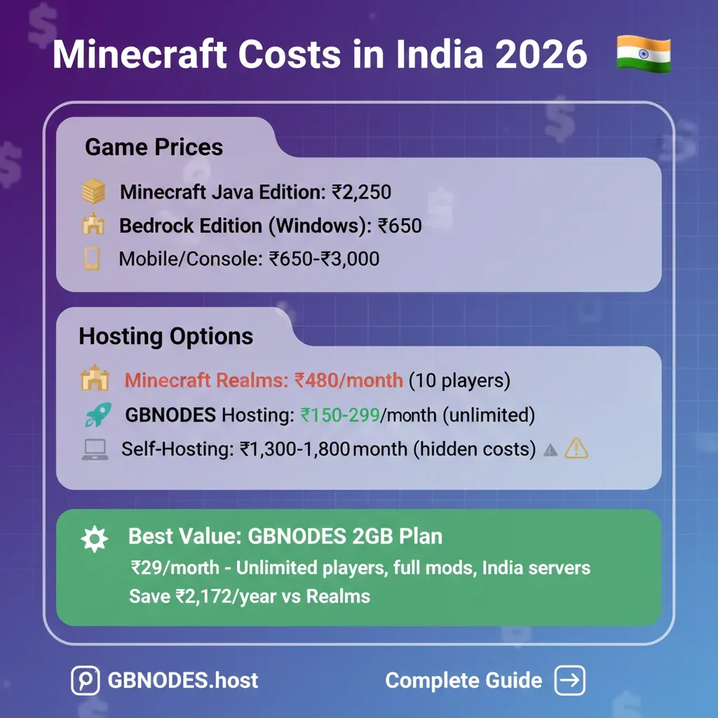 Minecraft Price in India 2026: Complete Buying Guide (Java, Bedrock, Realms & Server Hosting Costs)