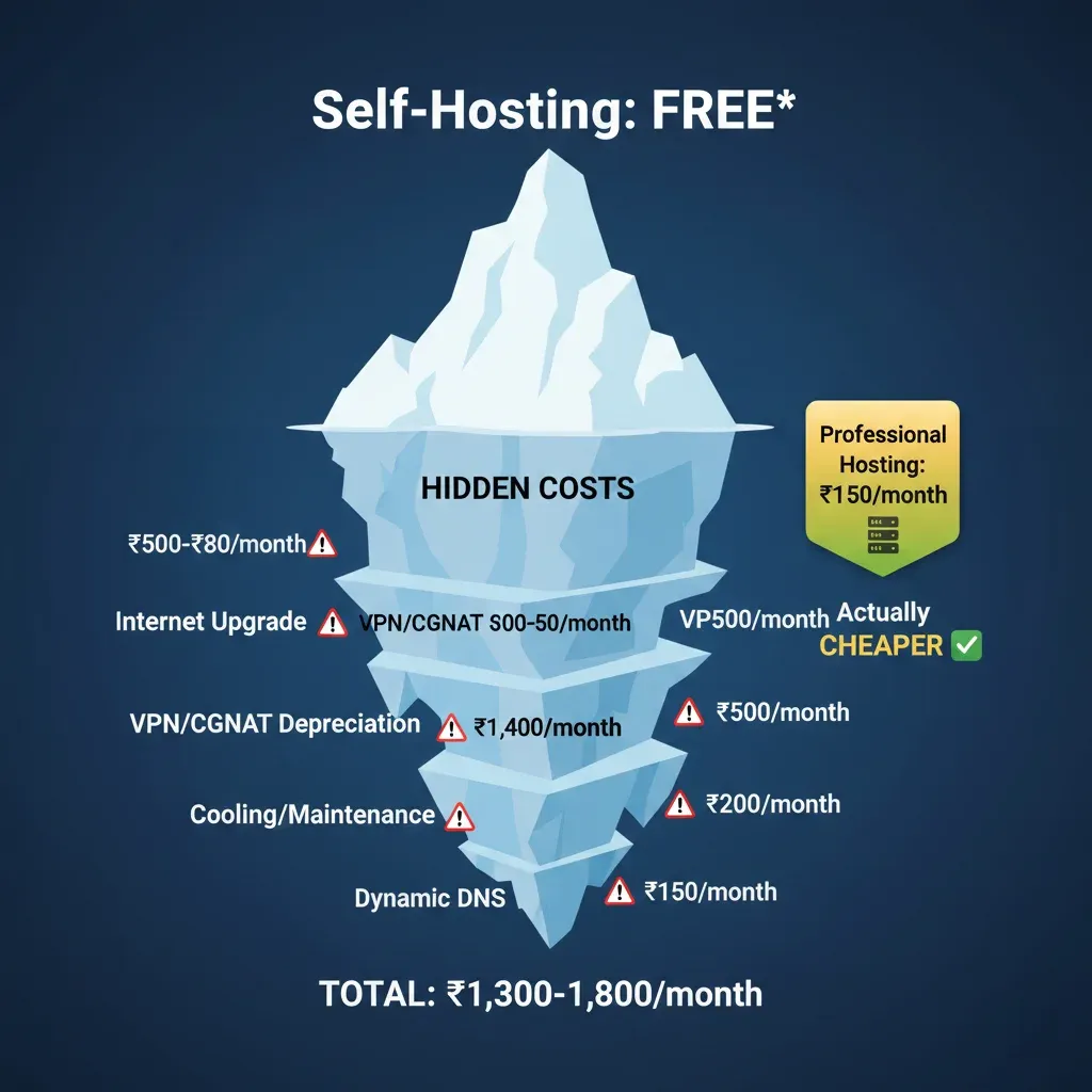 Professional Minecraft server hosting in India costs ₹150-₹299/month for small servers (10-20 players) and ₹499-₹1,200/month for larger communities (30-100+ players). Self-hosting appears free but hidden costs (electricity, internet, hardware) typically exceed ₹1,300/month, making professional hosting more cost-effective.